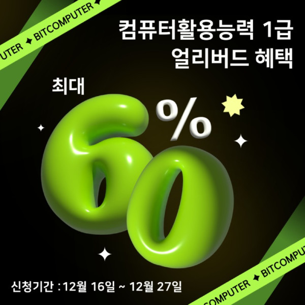 겨울방학특강 컴활1급 실기 최대 60% 할인, 팡팡 터지는 얼리버드 혜택!!